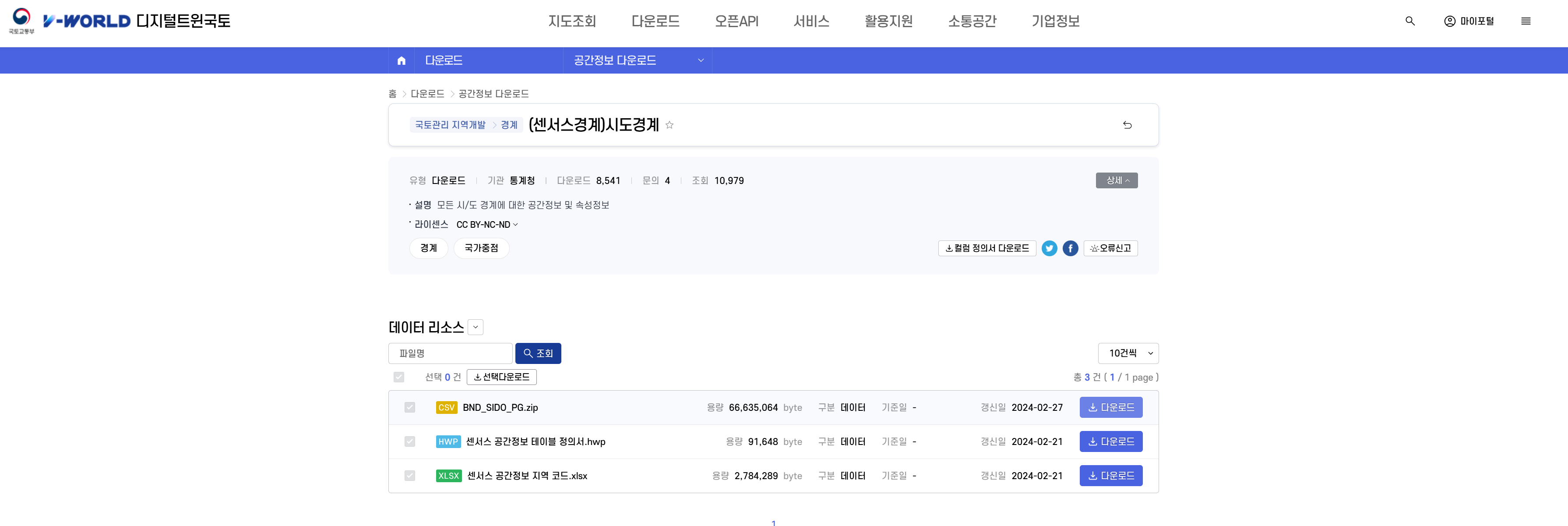 그 후에 shp 파일이 들어있는 BND~.zip 파일을 다운로드 했습니다.